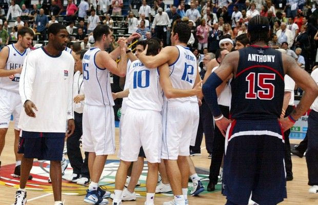 Σαν σήμερα πριν από 9 χρόνια η Εθνική Ελλάδας είχε συγκλονίσει τον πλανήτη με την τεράστια νίκη της επί των ΗΠΑ του Λεμπρόν Τζέιμς, του Καρμέλο Άντονι, του Ντουάιτ Χάουαρντ, του Ντουέιν Γουέιντ και των άλλων αστέρων του NBA στο Μουντομπάσκετ της Ιαπωνίας. Το Contra.gr σας θυμίζει την περιγραφή του ιστορικού αγώνα και σας παρουσιάζει τα πρωτοσέλιδα των εφημερίδων για την ανεπανάληπτη νίκη.