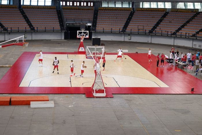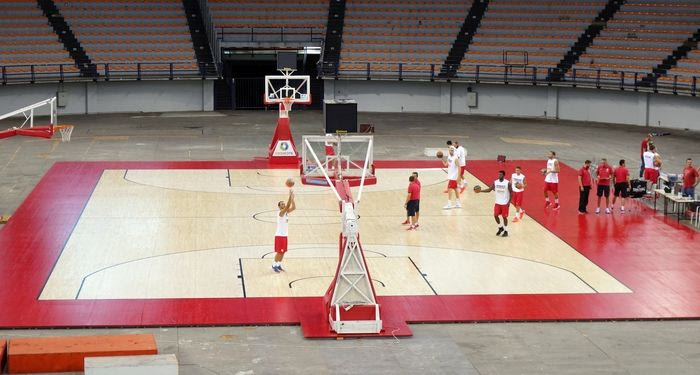 Το νέο παρκέ του Σταδίου Ειρήνης και Φιλίας είναι πιο… ζωντανό και μοντέρνο, έχοντας ως βασικό στοιχείο, όπως είναι λογικό, το κόκκινο χρώμα.