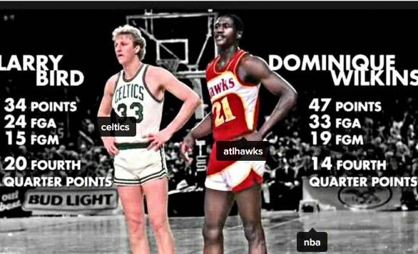 Mε αφορμή λοιπόν τις μάχες των Χοκς με τους Σέλτικς στα εφετινά πλέι οφ, ο Human Highlight film ανέβασε φωτογραφία στο instagram με την οποία θύμισε το επικό ματς των δύο ομάδων στα πλέι οφ του 1988.