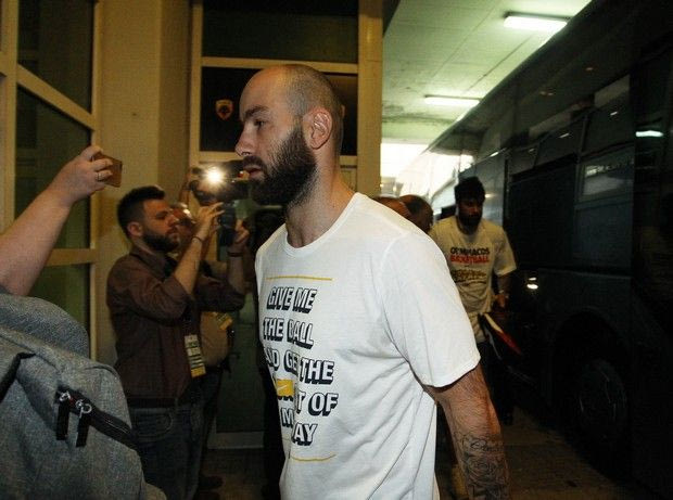 Φρεσκοκουρεμένος και μ' ένα μπλουζάκι που σίγουρα δεν επιλέχθηκε τυχαία έκανε την εμφάνισή του στο ΟΑΚΑ ο Βασίλης Σπανούλης. Το μήνυμα του αρχηγού του Ολυμπιακού πριν πατήσει στο παρκέ για τον πέμπτο τελικό.