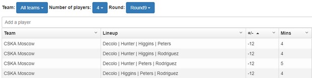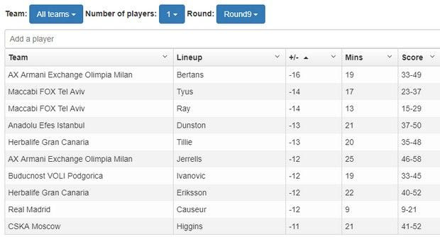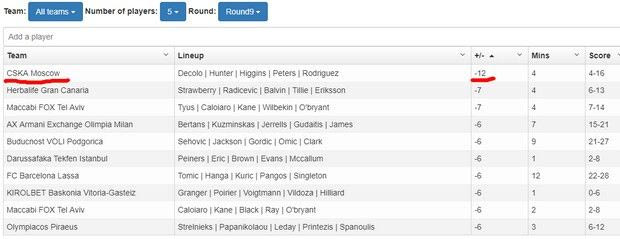 Αν ψάξεις πάντως για τη χειρότερη 5άδα της αγωνιστικής θα τη βρεις στην ΤΣΣΚΑ, η οποία με κοντό σχήμα (Ροντρίγκεθ, Ντε Κολό, Χίγκινς, Πίτερς, Χάντερ) υπέφερε στην Ποντγκόριτσα (16-4 σε 4 λεπτά) Χάνοντας εν τέλει από την Μπουντούτσνοστ με το καλάθι του Νίκολιτς στα 6” πριν από τη λήξη για το 93-92. Το πρόβλημα ήταν κυρίως του διδύμου Ροντρίγκεθ – Ντε Κολό, οι οποίοι δεν βρήκαν, σε αυτό το παιχνίδι, σημείο επαφής,