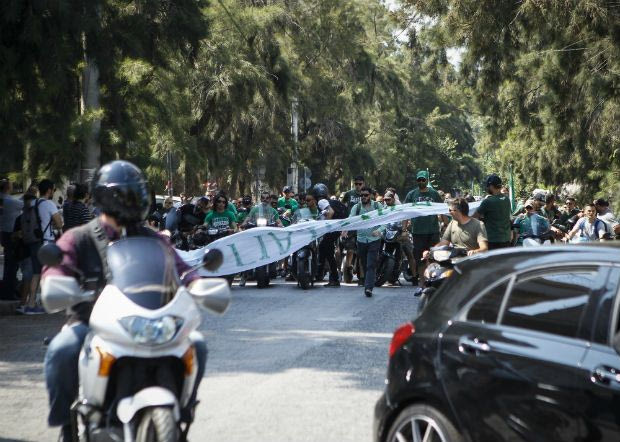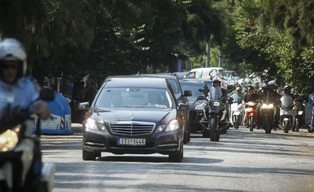 Πάνω από 500 μηχανές συνόδευσαν με καπνογόνα την αυτοκινητοπομπή με τη σορό του κορυφαίου μπασκετικού παράγοντα μέχρι το Α’ Νεκροταφείο.