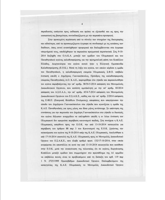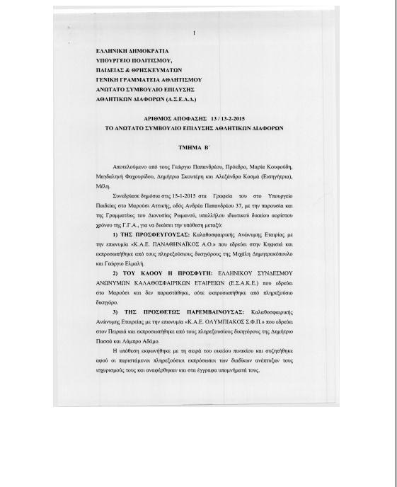– Επιβάλλει στην Κ.Α.Ε. ΠΑΝΑΘΗΝΑΪΚΟΣ Α.Ο. πρόστιμο πενήντα χιλιάδων (50.000,00) ευρώ.