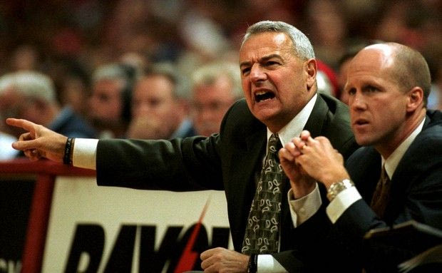 Wisconsin coach Dick Bennett, left, directs his team during the first half against Texas Tuesday, Dec. 7, 1999 in Madison, Wis. At right is assistant coach Brad Soderberg. (AP Photo/Andy Manis) Associated Press