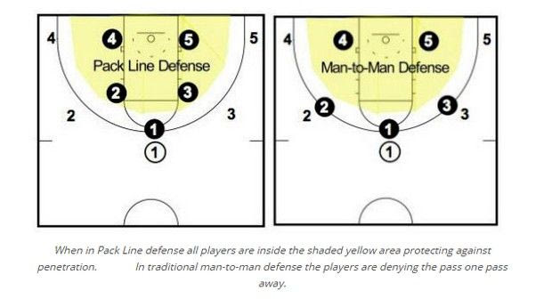 Πρόκειται για παραλλαγή του man-to-man. Η βασική διαφορά μεταξύ των δύο είναι πως οι οff ball αμυντικοί δεν πιέζουν τον παίκτη τους για να του αρνηθούν την πάσα, αλλά όλοι -εκτός του παίκτη που έχει μπροστά του τον κάτοχο της μπάλας- πρέπει να βρίσκονται μέσα στη νοητή γραμμή των πέντε μέτρων από το καλάθι.