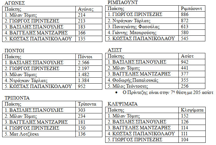 * Με κεφαλαία αναφέρονται οι εν ενεργεία παίκτες στον Ολυμπιακό.