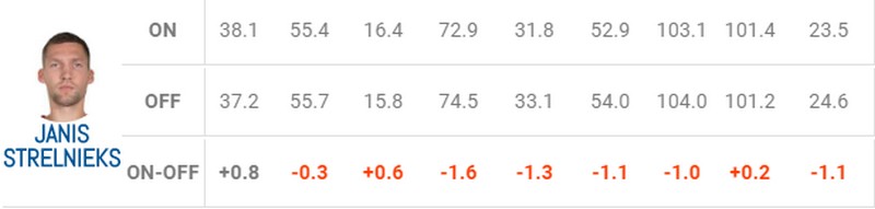 Όπως αντλήσαμε από την πλατφόρμα της Newstats.eu ο Ντέιβιντ Μπλατ έστησε 25 διαφορετικές πεντάδες, ψάχνοντας εναγωνίως το κατάλληλο σχήμα (καμία δεν συνυπήρξε περισσότερα από 6 λεπτά και μόνο τέσσερις κατέγραψαν θετικό πρόσημο), αλλά σε μόλις τρεις εξ αυτών χώρεσε ο Έλληνας γκαρντ. Αναγκαστικά απέμειναν να μοιράζονται το χρόνο οι Γκος – Σπανούλης – Στρέλνιεκς και στο τέλος τα κουκιά να μην βγουν. Αντίθετα τούς βγήκε η γλώσσα. Αναπόφευκτο. Με συνέπεια το μόνιμο ‘-‘ δίπλα από το όνομά τους. Παρά μάλιστα τους 13 πόντους του Λετονού, ο Ολυμπιακός είχε -14 όσο διάστημα έπαιζε.