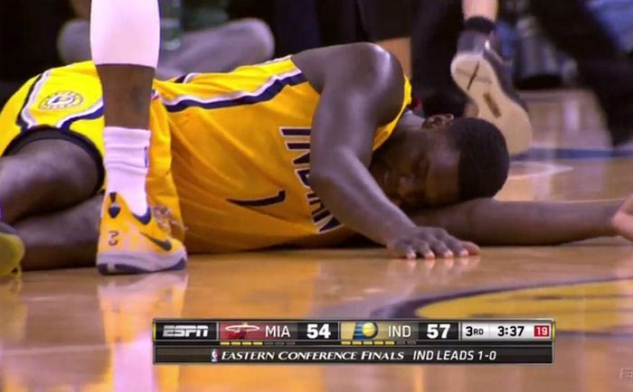 Ξερός έπεσε στο παρκέ στην αναμέτρηση των Πέισερς με τους Χιτ ο Λανς Στίβενσον, ο οποίος μετά από σπρώξιμο του Λεμπρόν Τζέιμς σωριάστηκε στο έδαφος και παρέμεινε εκεί, προσπαθώντας να... ξεκουραστεί.