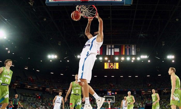 Ο Νικ Καλάθης έκανε το μπάσιμο και την κατάλληλη στιγμή βρήκε ιδανικά τον Γιάννη Μπουρούση, ο οποίος έσπρωξε την μπάλα στο καλάθι της Σλοβενίας και διαμόρφωσε το 27-17 στα 8:45 πριν από το τέλος της δεύτερης περιόδου.