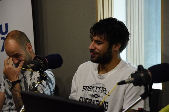 Ο Βασίλης Σπανούλης κι ο Γιώργος Πρίντεζης μόλις μπήκαν στο στούντιο.