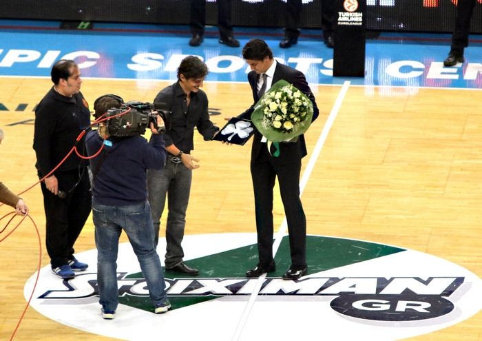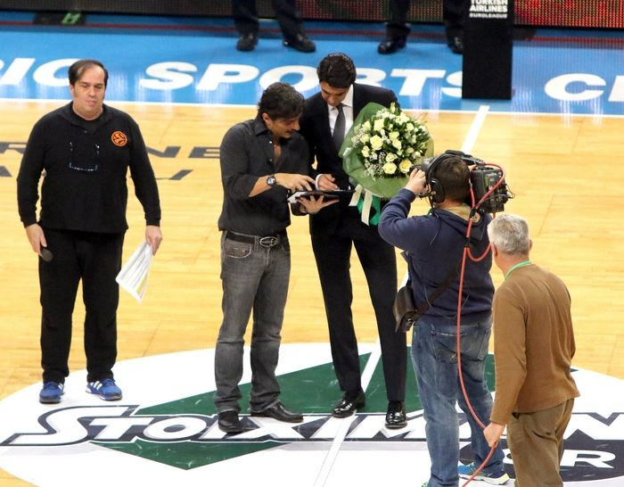 Την τιμητική πλακέτα, εν μέσω χειροκροτημάτων, παρέδωσε στον “Ίμπο” ο Δημήτρης Γιαννακόπουλος, ενώ ο Τούρκος άσος ευχαρίστησε -στα ελληνικά- τον κόσμο για την αποθέωση.