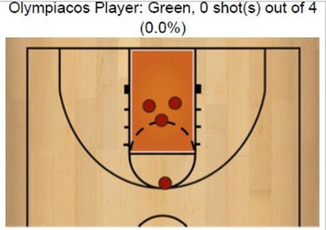Χάκετ και Σπανούλης είχαν 3/4 προσπάθειες κοντά στο καλάθι στο α ημίχρονο αλλά μόνο ο Σπανούλης έκανε προσπάθεια στο β μέρος.