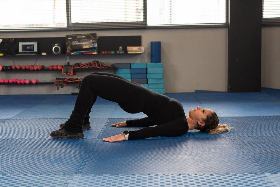 Άσκηση για να ξυπνήσεις τη μέση σου, τους οπίσθιους μηριαίους και τους γλουτούς. Απλά ξαπλώνεις ανάσκελα στο χαλί ή σε στρώμα και σηκώνεις ψηλά τη λεκάνη. Μείνε για 3 δευτερόλεπτα σε αυτή την θέση. Κάνε 30 επαναλήψεις.