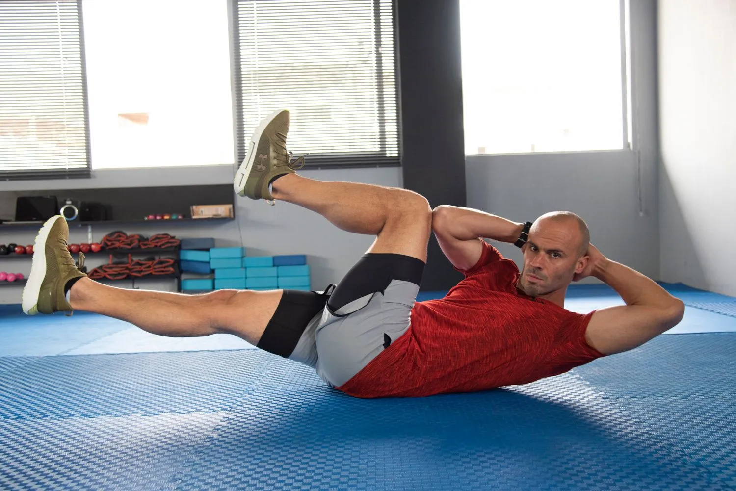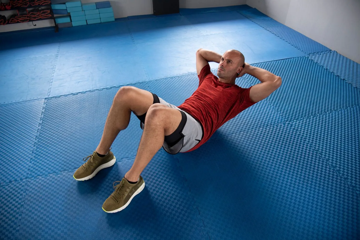 Ίσως η πιο γνωστή άσκηση κοιλιακών. Είσαι ξαπλωμένος ανάσκελα, πόδια λυγισμένα, και σηκώνεις τον άνω κορμό μέχρι να ξεκολλήσει η ωμοπλάτη σου. Αργά και σταθερά.