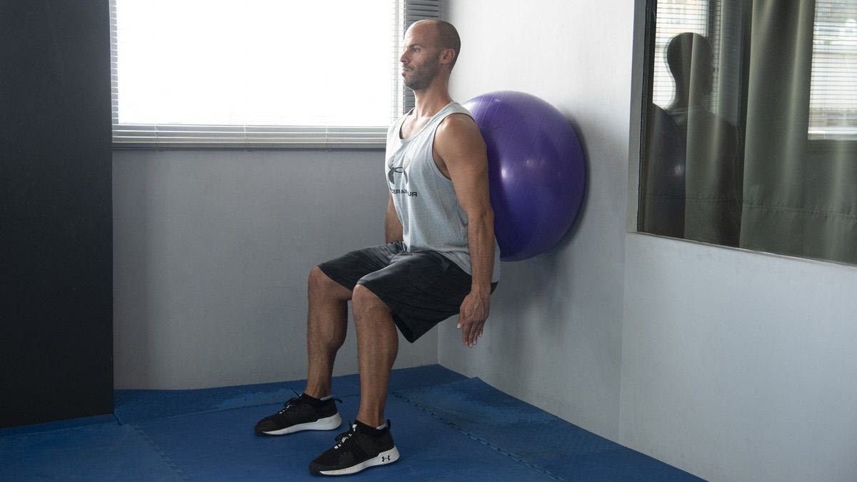 Τοποθέτησε μια ελβετική μπάλα στον τοίχο και ακούμπησε την πλάτη σου. Κάνε ένα ημικάθισμα και μείνε εκεί για 20-30 δευτερόλεπτα. Κάνε 5 σετ.