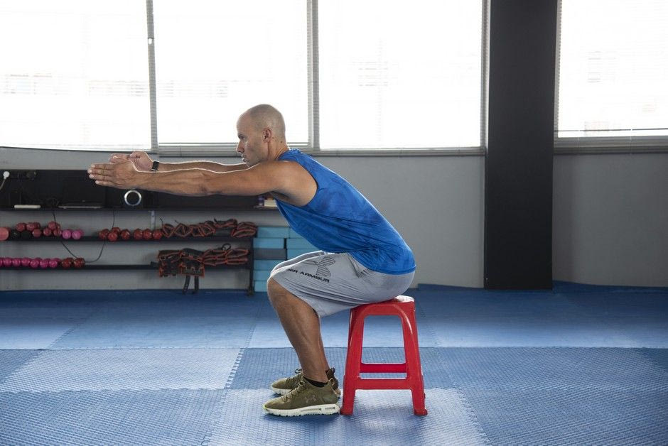 Αφού πλέον έχεις κάνεις πολλές επαναλήψεις με την καρέκλα και έχει αφομοιώσει την τεχνική, ήρθε η ώρα να κάνεις ελεύθερα τα καθίσματα. Βγάλε την καρέκλα και εκτέλεσε την άσκηση. Μην ξεχνάς να φέρνεις τους γλουτούς πίσω γέρνοντας ελαφρώς μπροστά τον κορμό. Όταν τα γόνατα φτάσουν τι 90 μοίρες, σήκωσε επάνω το σώμα σου.
