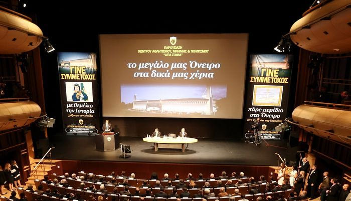 Στις 6 Νοεμβρίου του 2013 πραγματοποιήθηκε η παρουσίαση του γηπέδου της ΑΕΚ στο Ίδρυμα Ωνάση. Σε μία λαμπερή εκδήλωση οι λίγοι τυχεροί που είχαν την ευκαιρία να βρεθούν στο μεγαλοπρεπές κτίριο της Λεωφόρου Συγγρού, πήραν μία πρώτη γεύση από το νέο γήπεδο της ομάδας στη Νέα Φιλαδέλφεια. Εντυπωσιακή εκδήλωση, αρκετά συλλεκτικά δώρα για τους παρευρισκόμενους και ενθουσιασμός που ξεπέρασε τα όρια της αίθουσας και έφτασε σε όλα τα σημεία του πλανήτη μέσω του link της απευθείας μετάδοσης που προσέφερε δωρεάν η “κιτρινόμαυρη” ΠΑΕ.