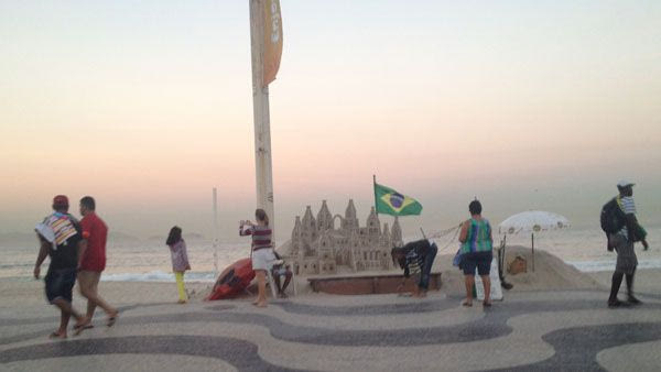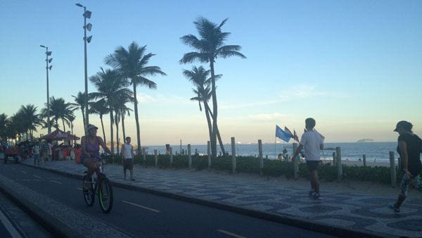 Η Κοπακαμπάνα είναι πολύ ανώτερη απ’ ότι περιγράφεται. Χιλιάδες κόσμου παίζουν, τρέχουν, φλερτάρουν, απολαμβάνουν την ομορφιά της και κινούνται πάνω στην απέραντη αμμουδιά της με εκπληκτικό ρυθμό. Πιτσιρικάδες με μια μπάλα, κορίτσια στα δεκάδες γήπεδα beach volley, μαραθωνοδρόμοι, ποδηλάτες, ακροβάτες.