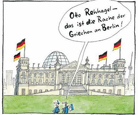 Μπορεί να μεγάλωσε, αλλά ακόμη και η σχεδόν δεκαετή εμπειρία του στην Ελλάδα τον έκανε ακόμη πιο χαρισματικό και άνετο. Το ελληνικό χρώμα δεν μπορούσε φυσικά να λείπει από όλο το σκηνικό, όπως η πολύ εύστοχη καρικατούρα του περιοδικού “kicker”, όπου δύο φίλοι της Χέρτα μιλούν για το σωτήρα Οτο κι ο ένας αναρωτιέται μήπως όμως ο Ρεχάγκελ είναι η εκδίκηση των Ελλήνων προς το (πολιτικό) Βερολίνο.