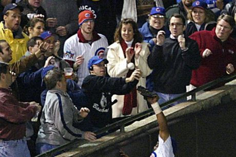Ένας φίλαθλος ονόματι Στιβ Μπάρτμαν θέλει το μπαλάκι για ιστορικό ενθύμιο ή για να το πουλήσει στο e-bay ή δεν ξέρω για ποιο λόγο. Απλώνει το χέρι και το αρπάζει δέκατα του δευτερολέπτου πριν η μπάλα μπει στο γάντι του Αλού. Δεν ζω όνειρο αλλά εφιάλτη! Ακόμη ηχούν στα αυτιά μου οι λέξεις του σπορτκάστερ του Φοξ Θομ Μπρένιαμαν και ο τρόπος που περιέγραψε τη φάση: “Again in the air, down the left field line. Alou… reaching into the stands…. and couldn’t get it and is livid with a fan!”