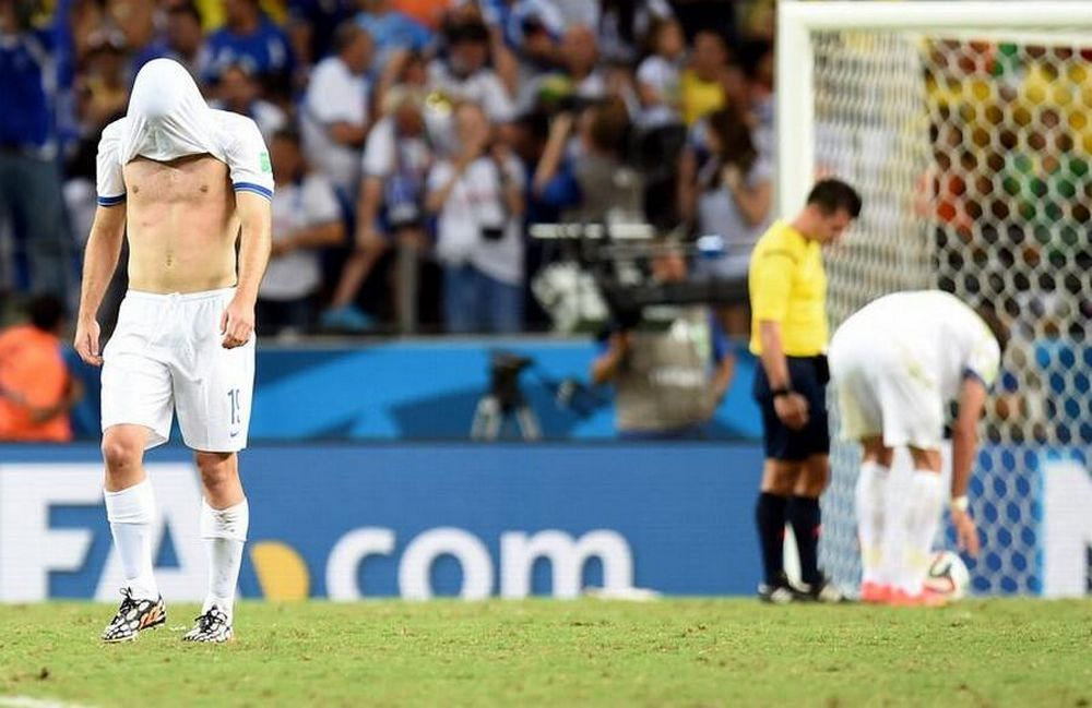 Τρίτη 24 Ιουνίου του 2014. Μετά από 27 χρόνια. Μόλις είδα τη φωτογραφία με τον Σωκράτη Παπασταθόπουλο να κρύβει το πρόσωπό του με τη φανέλα της Ελλάδας για να μην δει το πέναλτι, θυμήθηκα το βράδυ της 14ης Ιουνίου του 1987. Όπως και τότε. Αργύρης Καμπούρης, ο Γιώργος Σαμαράς.