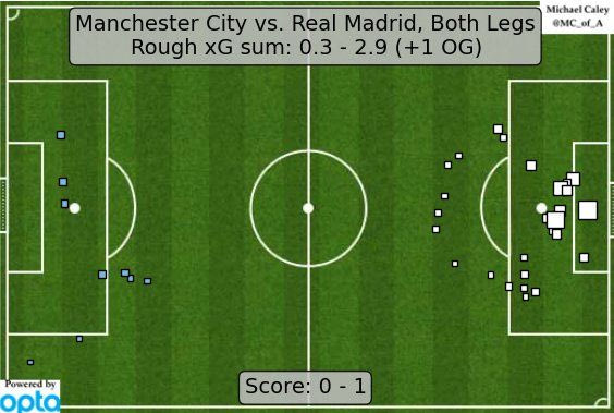 Η ομάδα του Πελεγκρίνι ήθελε ένα γκολ για να προκριθεί και έκανε μόλις πέντε σουτ και στην εστία μέτρησε ένα γύρισμα του Ντε Μπρόινε από δεξιά στην περιοχή. Συνολικά στους δύο αγώνες, έσπασε κάθε ρεκόρ. Σε 180’ λεπτά οι ευκαιρίες της Σίτι έφεραν το απίστευτο νούμερο των 0.30 expected goals. Με αυτόν τον ρυθμό, θα έπρεπε να δώσουν αλλά 4-5 τέτοια ματς για να φτάσουν να έχουν εικόνα ομάδας που αξίζει να βάλει ένα γκολ.