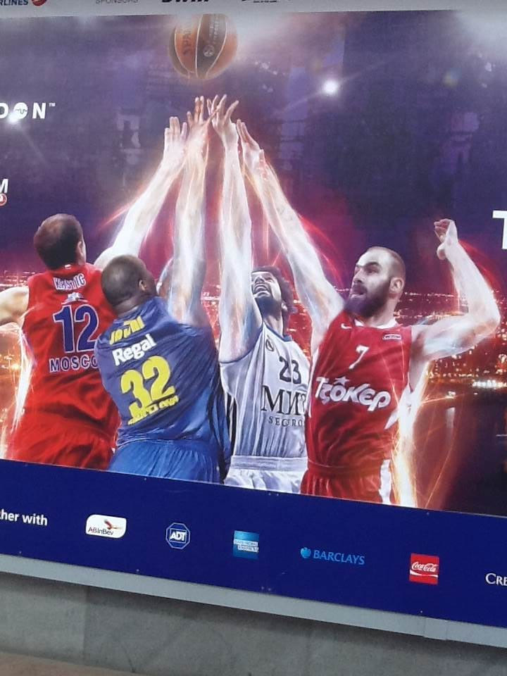 Το concept της βασικής γιγαντοαφίσας που σκάρωσε η Ευρωλίγκα, ήθελε τέσσερις παίκτες , έναν από κάθε ημιφιναλίστ, να διεκδικούν την μπάλα στον αέρα. Κάτι σαν τζάμπολ. Το περίεργο ήταν ότι ενώ από την ΤΣΣΚΑ είχε επιλέξει τον Κρίστιτς και από την Μπαρτσελόνα τον Τζαβάϊ, δηλαδή δυο θηρία, από τον Ολυμπιακό διάλεξαν τον Σπανούλη και από την Ρεαλ τον Γιουλ. Δηλαδή δυο περιφερειακούς. Τυχαίο;