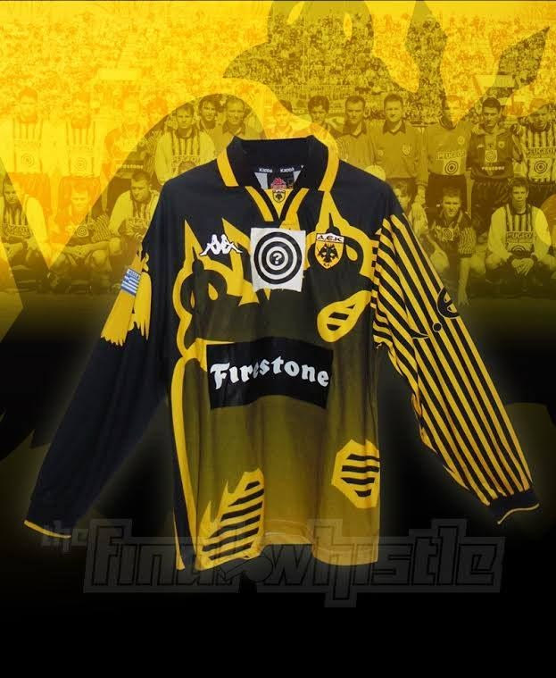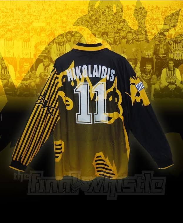 Η επετειακή φανέλα της ΑΕΚ με τον συμβολικό στόχο, η οποία χρησιμοποιήθηκε από τον Ντέμη Νικολαϊδη στο φιλικό με την Παρτιζάν. Οι συγκεκριμένες φωτογραφίες προέρχονται από τη σελίδα στο Facebook, Final Whistle η οποία ανήκει σε συλλέκτη οπαδό της «Ένωσης»: