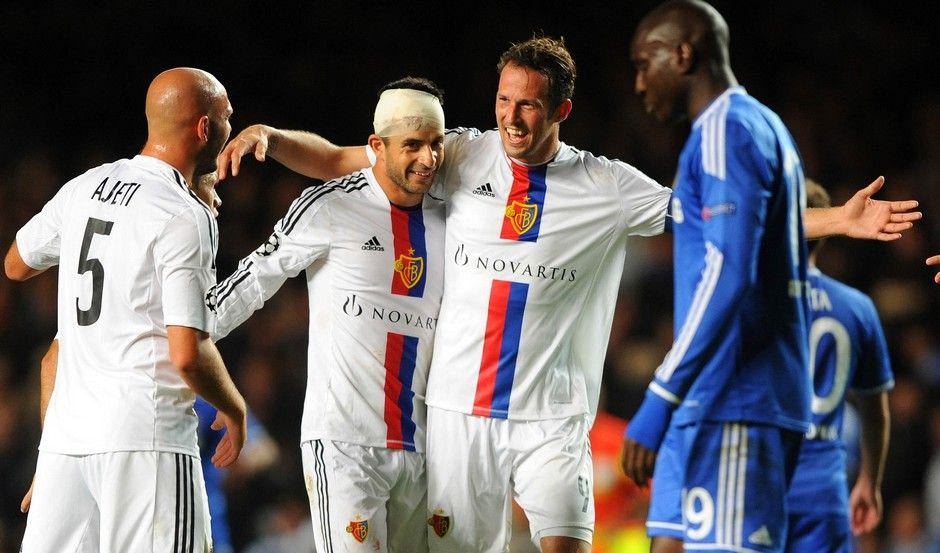 Football - Chelsea v FC Basel - UEFA Champions League Group Stage Matchday One Group E - Stamford Bridge, London, England - 18/9/13 Marco Streller (C) of FC Basel celebrates with team mates after the match Mandatory Credit: Action Images / Henry Browne Livepic EDITORIAL USE ONLY. Action Images