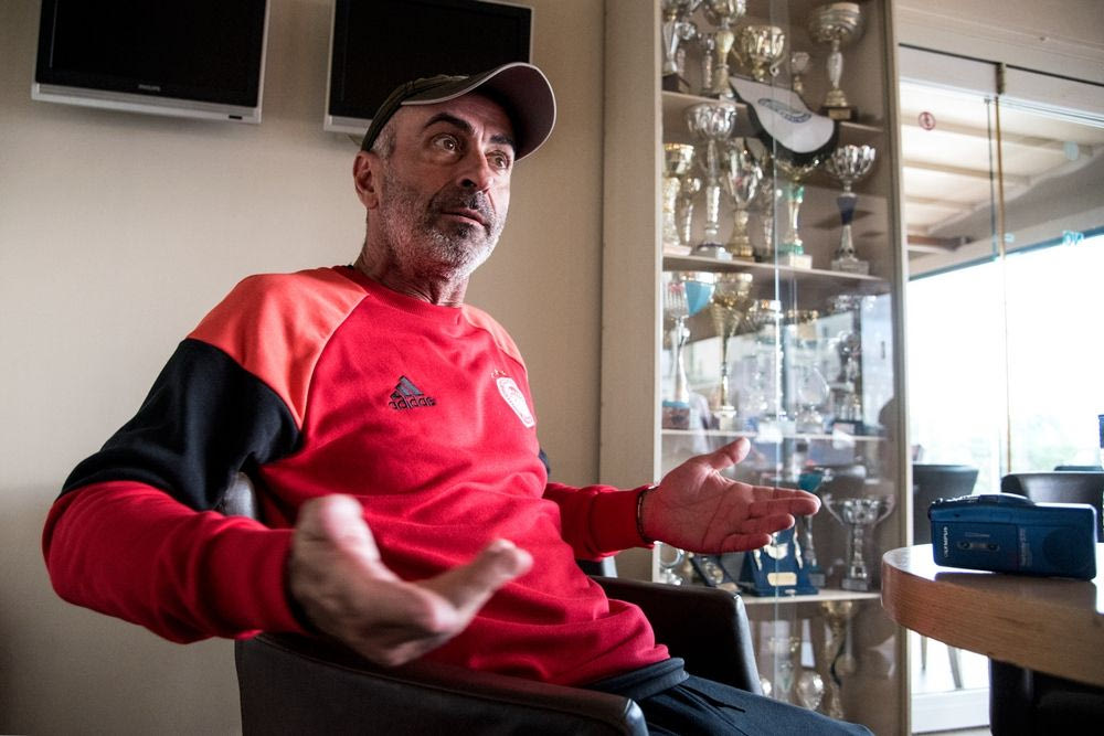 Χρόνια τού έκανα… πρέσινγκ γι’ αυτή τη συνέντευξη. Κάθε φορά που συναντιόμασταν, συνήθως στο στέκι του επί σειρά ετών στη Δροσιά, προσπαθούσα να τον πείσω. Πάντα μετρημένος και ταπεινός, απέφευγε. Όχι τόσο για τον εαυτό του, όσο για την ομάδα. Δεν ήθελε να πει το παραμικρό που θα μπορούσε να κάνει “ζημιά” στον Ολυμπιακό. Χρειάστηκε να του ξεκαθαρίσω ότι θέλω να μιλήσουμε για τον “δικό του” Ολυμπιακό, για τη δική του πορεία μέσα στην ομάδα, για να καμφθούν οι όποιες αντιρρήσεις του…