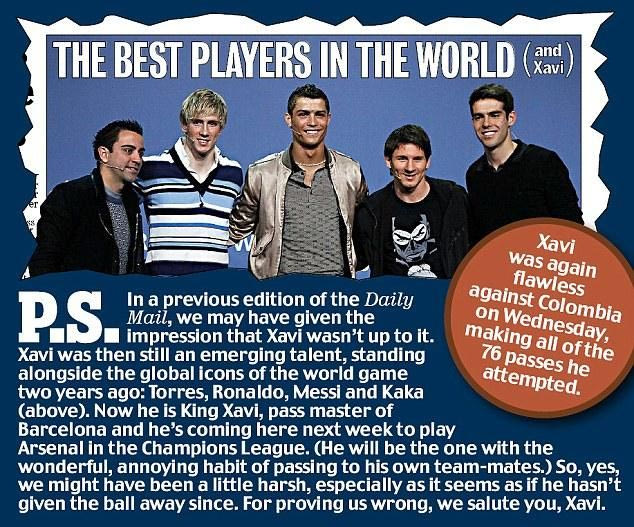 Στον υπέρτιτλο της φωτογραφίας που χρησιμοποίησε η “Daily Mail”, το σχόλιο ήταν “οι καλύτεροι παίκτες στον κόσμο” και μέσα σε παρένθεση “και ο Τσάβι”. Λίγους μήνες αργότερα, ο Τσάβι πανηγύριζε όλους τους διαθέσιμους τίτλους που μπορούσε να κατακτήσει η Μπαρτσελόνα εκείνη τη σεζόν…
