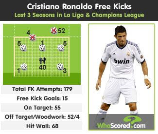 Εάν αυτό μπορεί να χαρακτηριστεί απλά ένα κακό διάστημα, μία εξαίρεση του κανόνα, ας δούμε τα στατιστικά του Πορτογάλου στις πρώτες 3 σεζόν του στη Ρεάλ (2009-2012), από την εξειδικευμένη σε αριθμούς του ποδοσφαίρου ιστοσελίδα “Who Scored”. Σε 179 προσπάθειες, λιγότερες από το 1/3 ήταν εύστοχες (οι 55) και οι 15 κατέληξαν σε γκολ. Σε τρεις σεζόν σε πρωτάθλημα και Champions League, ο “σπεσιαλίστας” Ρονάλντο αφενός δεν μπορούσε να στείλει την μπάλα στο τέρμα, αφετέρου, όταν το έκανε, ο τερματοφύλακας απόκρουσε 40 φορές. Άλλες 56 φορές το σουτ ήταν άστοχο (οι 4 στο δοκάρι) και οι υπόλοιπες 68 προσπάθειες κατέληξαν στο τείχος.