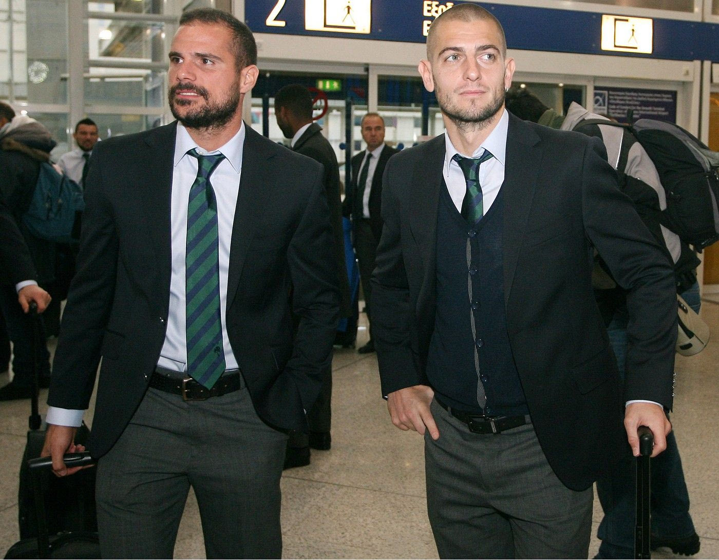 Και στις δυο περιπτώσεις επιβραβεύουμε την έξυπνη προετοιμασία της εμφάνισης με κουστούμι που φαίνεται πως έκανε ο κάθε αθλητής. Κώστας Τσιμίκας και Ρομπέρτο εμφανίστηκαν σε διαφορετικές χρονικές περιόδους με ισάξια αποτελέσματα. Ραμμένο σακάκι που κουμπώνει χωρίς να ‘πνίγει’ τον αθλητή, κόκκινη γραβάτα, αξεσουάρ (γυαλιά ηλίου, ρολόι, pins) που ανεβάζουν επίπεδο την εμφάνιση, χρώματα σακακιού που αναδεικνύουν το χρώμα της επιδερμίδας του καθενός. Νίκη από το αεροδρόμιο η εμφάνιση και των δύο.