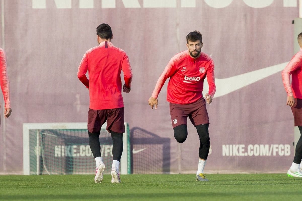 Ο Ζεράρ Πικέ της Μπαρτσελόνα σε στιγμιότυπο της προπόνησης στο 'Σιουτάτ Εσπορτίβα', Σαντ Τζουάν Ντεσπί, Δευτέρα 15 Απριλίου 2019 AP Photo/Joan Monfort