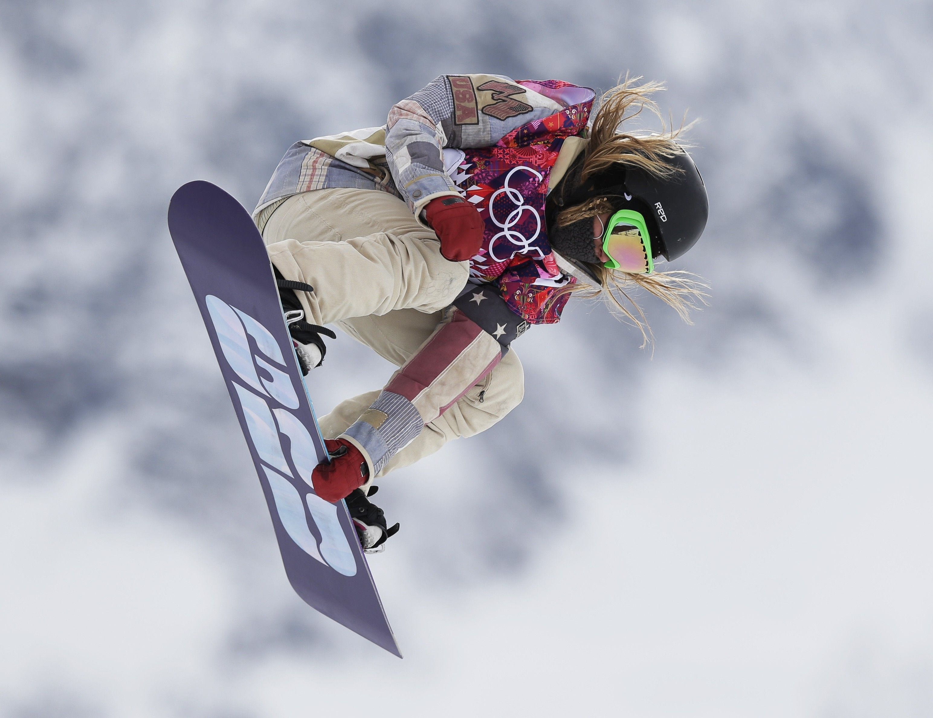 Jamie Anderson of the United States takes a jump on her first run in the women's snowboard slopestyle final at the 2014 Winter Olympics, Sunday, Feb. 9, 2014, in Krasnaya Polyana, Russia. (AP Photo/Andy Wong) AP