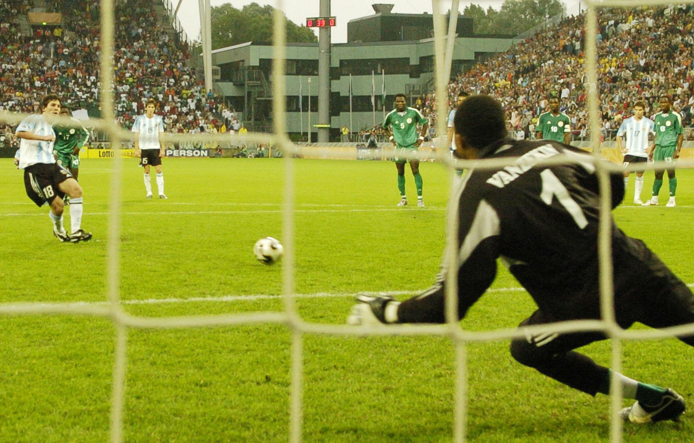Η Αργεντινή έφτασε στον τελικό του Μουντιάλ Νέων, όπου αντιμετώπισε τη Νιγηρία του 18χρονου τότε Όμπι Μίκελ, σε ένα ματς που διεξήχθη στην Ουτρέχτη. Ο Μέσι, με το νούμερο 18 στη φανέλα, ανατράπηκε στο 39′ από τον Αντελέγιε και κέρδισε το πέναλτι. Έστησε τη μπάλα στη λευκή βούλα και εκτέλεσε, στέλνοντάς τη στην αριστερή γωνία του Βανζεκίν, ο οποίος έπεσε δεξιά. Η Αργεντινή πήρε έτσι προβάδισμα 1-0.