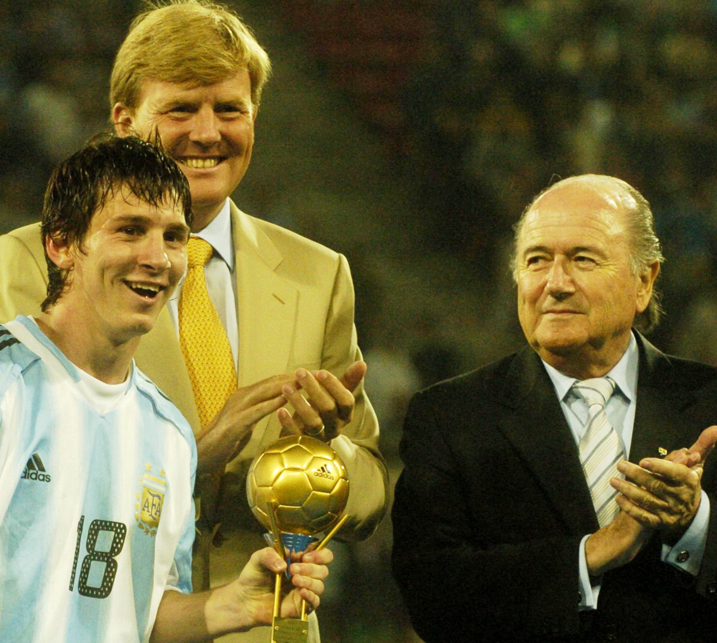 Ο Λέο Μέσι ψηφίστηκε από τους δημοσιογράφους ως ο κορυφαίος παίκτης του Μουντιάλ Νέων του 2005 και βραβεύτηκε με τη Χρυσή Μπάλα (Adidas Golden Ball) της διοργάνωσης. Ήταν ο τρίτος Αργεντίνος με τη συγκεκριμένη διάκριση, μετά τον Ντιέγο Μαραντόνα το 1979 και τον Χαβιέρ Σαβιόλα το 2001. Εδώ τον βλέπουμε με το βραβείο, δίπλα στον τότε πρόεδρο της FIFA, Σεπ Μπλάτερ.