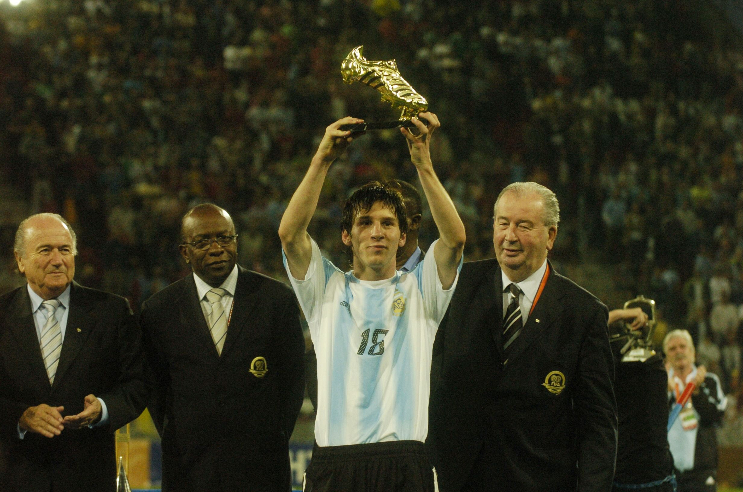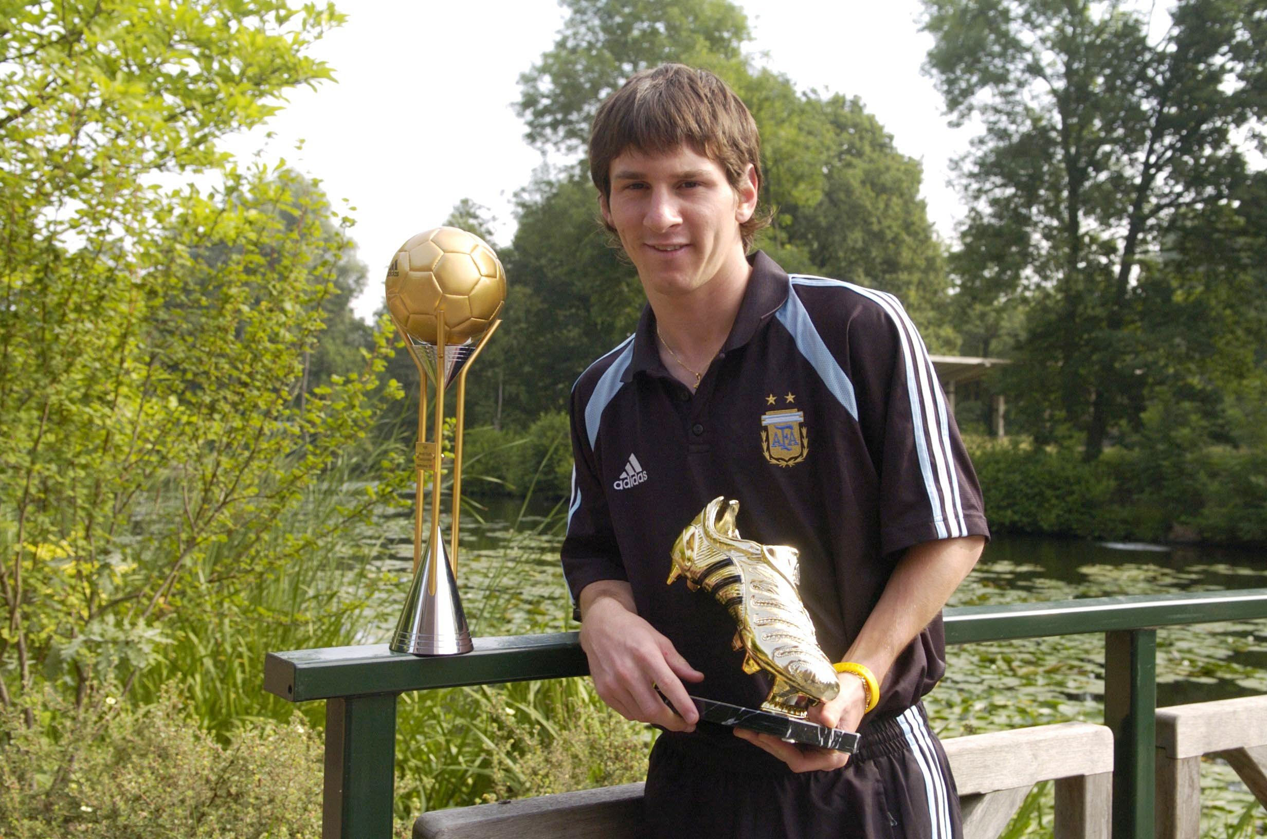 Εδώ βλέπουμε τον Μέσι να ποζάρει με τα δυο βραβεία που κέρδισε στο Μουντιάλ Νέων του 2005, την Adidas Golden Ball (κορυφαίος παίκτης του τουρνουά) και το Χρυσό Παπούτσι (πρώτος σκόρερ του τουρνουά). Ο Λέο έγινε έτσι μόλις ο δεύτερος Αργεντίνος που κέρδισε και τις δυο διακρίσεις στην ίδια διοργάνωση, μετά τον Σαβιόλα το 2001, ενώ το επανέλαβε δυο χρόνια αργότερα ο Αγουέρο στη διοργάνωση του 2007.