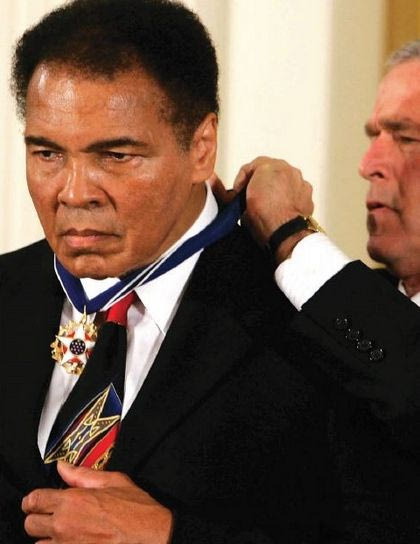 Τιμήθηκε από τον Kofi Annan ως πρεσβευτής ειρήνης των Ηνωμένων Εθνών, ιδρύθηκε το Ινστιτούτο Muhammad Ali για την Ειρήνη και τη Δικαιοσύνη στη γενέτειρά του, το 2005 του απονεμήθηκε το μετάλλιο της ελευθερίας από τον Πρόεδρο G.W.Bush, το 2007 θεσπίστηκε η Muhammad Ali Day στη Βουλή των Αντιπροσώπων, το 2009 η NAACP τον έχρισε ισόβιο Πρόεδρο για όσα έκανε για την αφροαμερικανική κοινότητα. Τιμήθηκε πολλάκις και σε όλα τα μέρη του κόσμου όσο άντεχε η καρδιά και η ψυχή του. Γυρίστηκαν κινηματογραφικές ταινίες, γράφτηκαν βιβλία, άπειρα άρθρα στον παγκόσμιο Τύπο, πολλά νέα παιδιά ακόμη και σήμερα εμπνέονται από τη διαδρομή και τη δράση του. Έσβησε το πρωινό της Παρασκευής 3 Ιουνίου του 2016 στο Scottsdale της Αριζόνα σε ηλικία 74 ετών και με μιας πλημμύρισε ο κόσμος όλος με τη λάμψη του. He was the greatest.