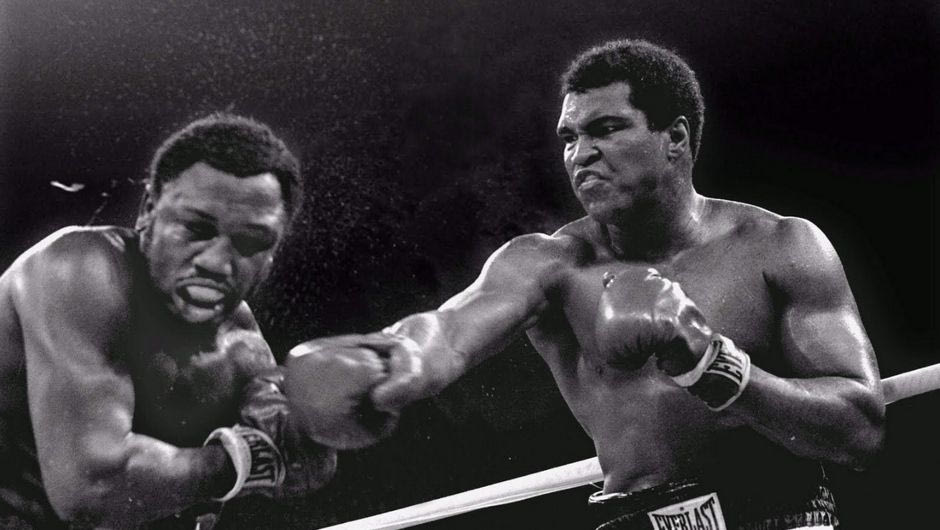 Ο Ali ήταν ελαφρώς πιο αργός σε σχέση με τον μποξέρ που γνώριζε ο κόσμος, ο Frazier άντεξε και στον έκτο γύρο, η ενέργειά του ήταν απίστευτη, αστείρευτη, τα χτυπήματά του σχεδόν χειρουργικά. Οι δύο πυγμάχοι καταθέτουν την ψυχή τους, είναι πραγματικά ισότιμοι μέχρι τον δέκατο τέταρτο γύρο. Ο Frazier όμως έκανε την τελευταία αντεπίθεση, μέχρι που κατάφερε και το ααδιανόητο (knock down) και κέρδισε με ομόφωνη απόφαση των κριτών. Πάταγος! Είναι η πρώτη ήττα στα χρονικά για το μεγάλο Muhammad Ali, η πίκρα της οποίας μετριάζεται από την ομόφωνη απόφαση του Supreme Court σχετικά με την άρνησή του να καταταγεί. Με ψήφους 8-0 το δικαστήριο αποδέχθηκε ότι ο Ali αρνήθηκε να υπηρετήσει λόγω θρησκευτικών πεποιθήσεων και μια υπόθεση που τον έφθειρε πάρα πολύ ψυχολογικά, είχε αίσιο τέλος. Πλέον στο μυαλό του είχε μόνο την εκδίκηση, επί μια διετία διέλυσε και τους δέκα που τόλμησαν να τον αντιμετωπίσουν και περίμενε στωικά τη σειρά του για τη μεγάλη ρεβάνς. 31 Μαρτίου του 1973 όμως, σε ηλικία 31 ετών δέχεται το δεύτεορ πλήγμα στον εγωισμό του: χάνει στο δέκατο γύρο από τον Ken Norton, ο οποίος του έχει σπάσει το σαγώνι από το δεύτερο γύρο με μια τρομακτική γροθιά. Η λύσσα του Ali τον έκανε να αγωνιστεί για οκτώ γύρους με σπασμένο σαγώνι και αφόρητους πόνους, αλλά δεν απέφυγε την ήττα.