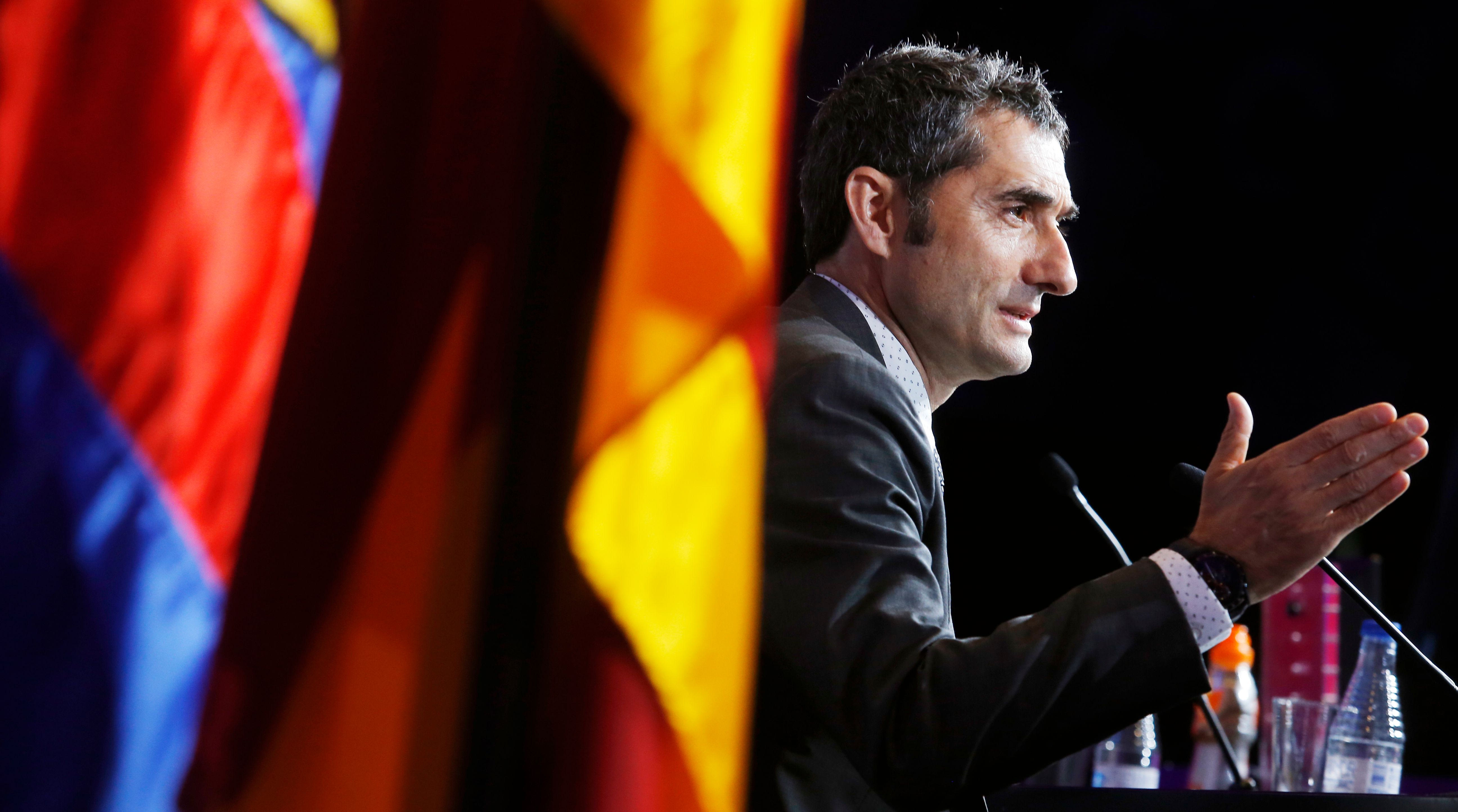 Ο Ερνέστο Βαλβέρδε στην επίσημη παρουσίασή του από τη Μπαρτσελόνα το 2017. EV