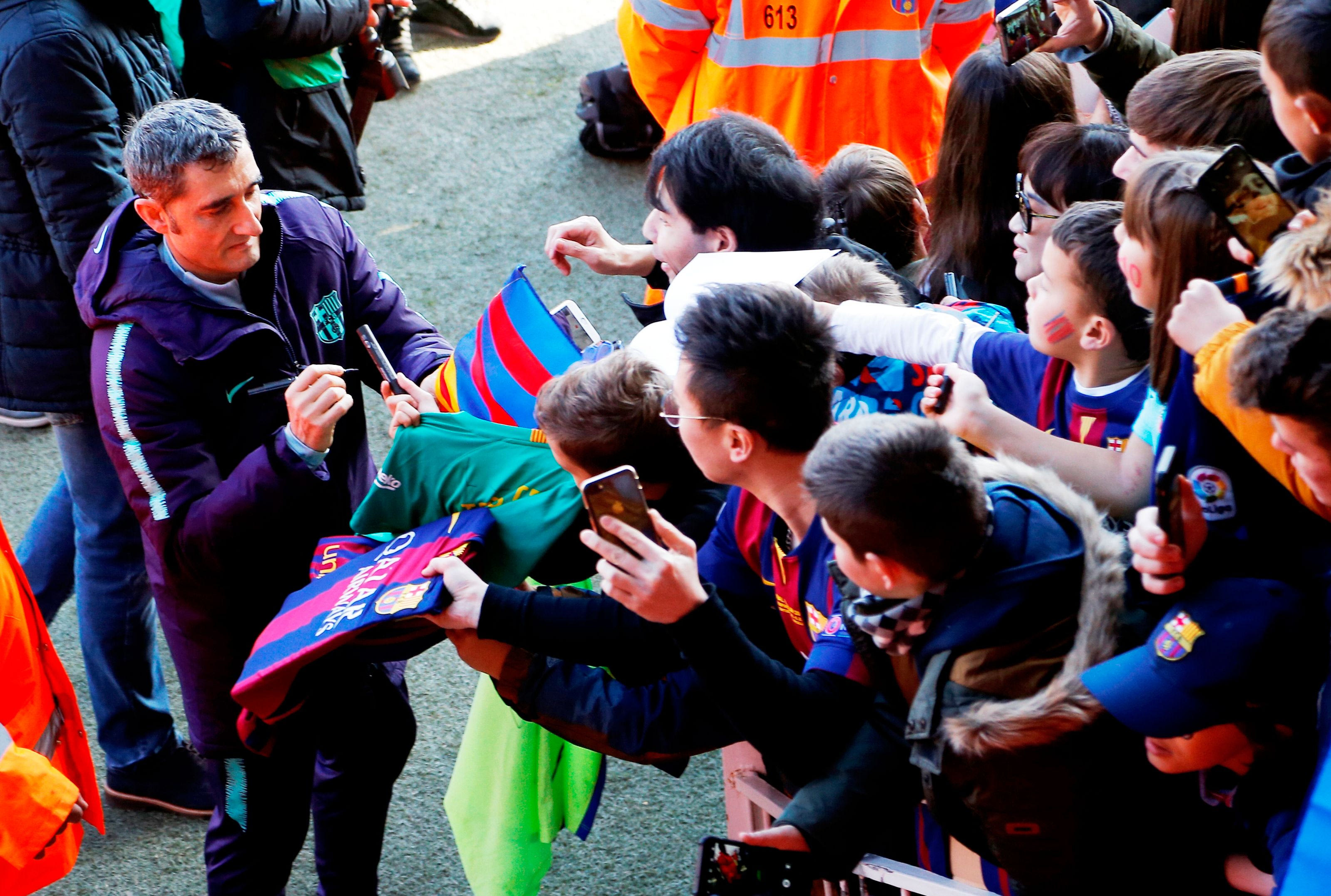 Ο Ερνέστο Βαλβέρδε υπογράφει αυτόγραφα σε μικρούς φίλους της Μπαρτσελόνα.