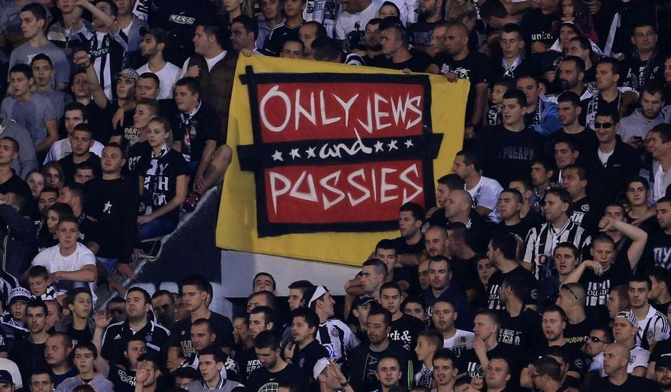 Στο παιχνίδι της Παρτιζάν με την Τότεναμ για την 1η αγωνιστική των ομίλων του Europa League, οι Σέρβοι οπαδοί παραφράζοντας την βρετανική σειρά “Only Fools and Horses”ύψωσαν πανό που έγραφε “Only Jews and p@ss$es”( “Μόνο Εβραίοι και Μ@@νι@”) αναφερόμενοι στην ομάδα της Τότεναμ!