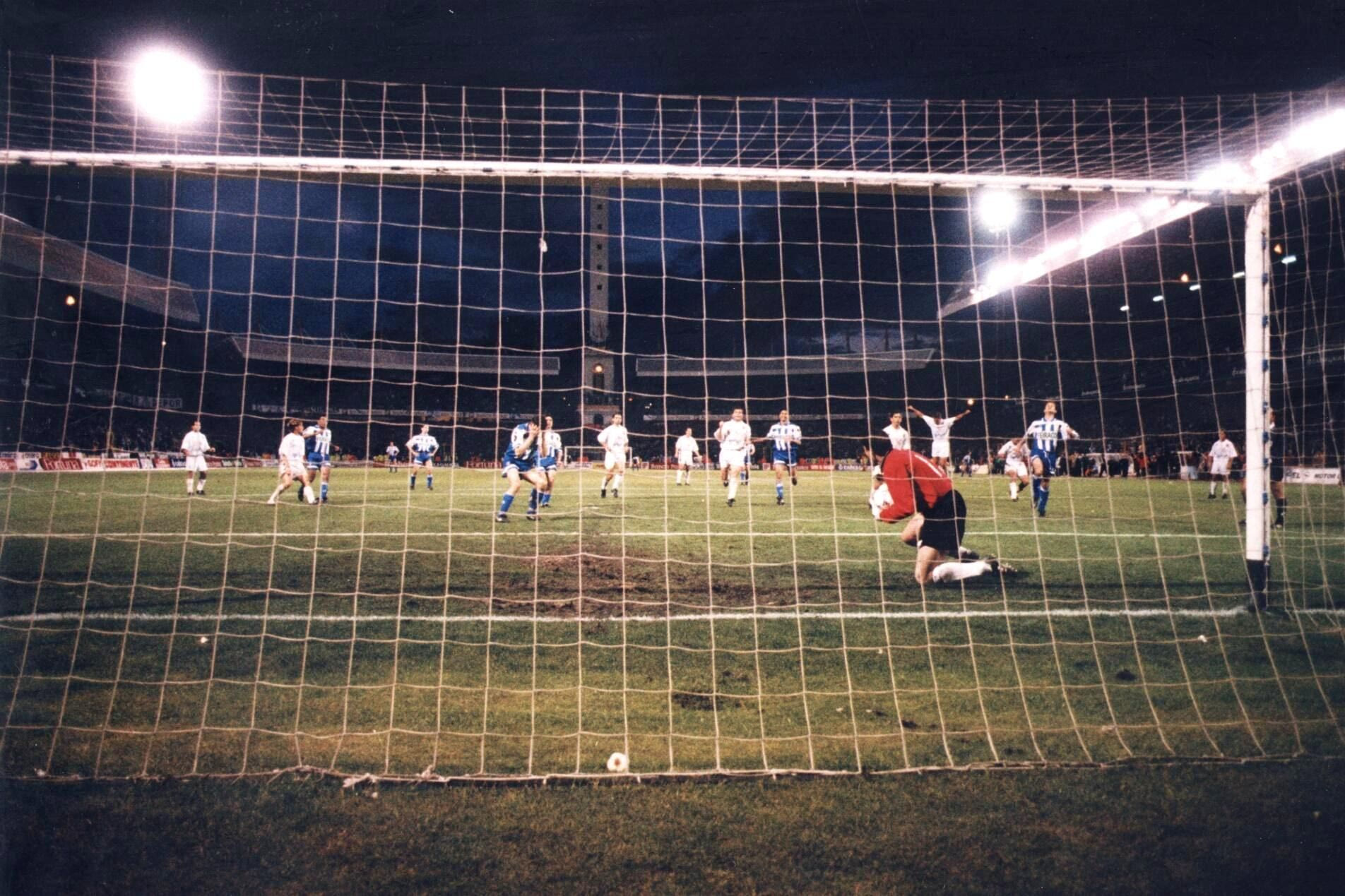 Το "καταραμένο" πέναλτι του Τζούκιτς. Ο Γκονθάλεθ έχει μπλοκάρει τη μπάλα και το δράμα του "Ριαθόρ" φτάνει στην κορύφωσή του (14/5/1994) LA VOZ DE GALICIA