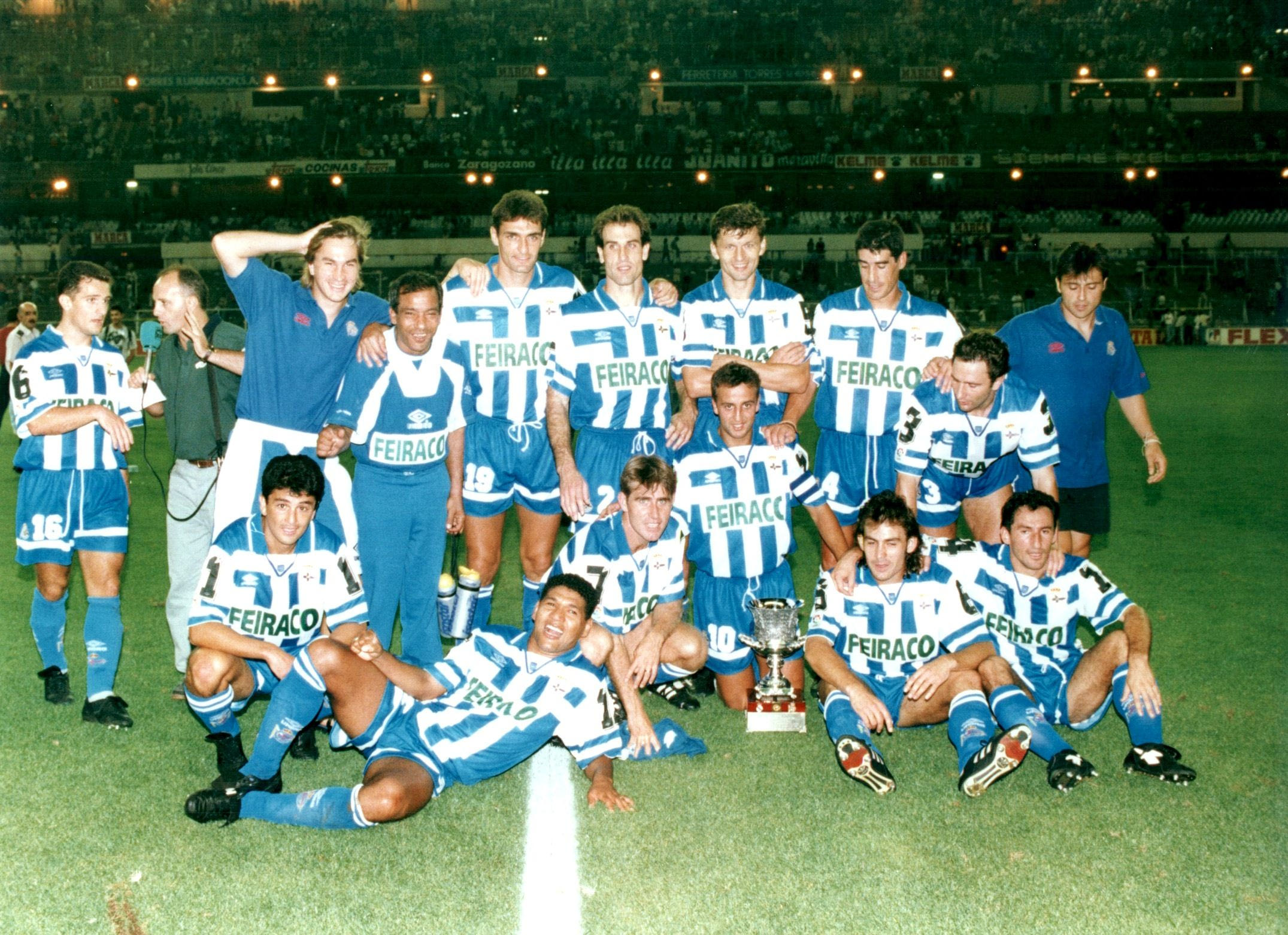 Οι παίκτες της Ντέπορ με το τρόπαιο του ισπανικού Σούπερ Καπ του 1995.