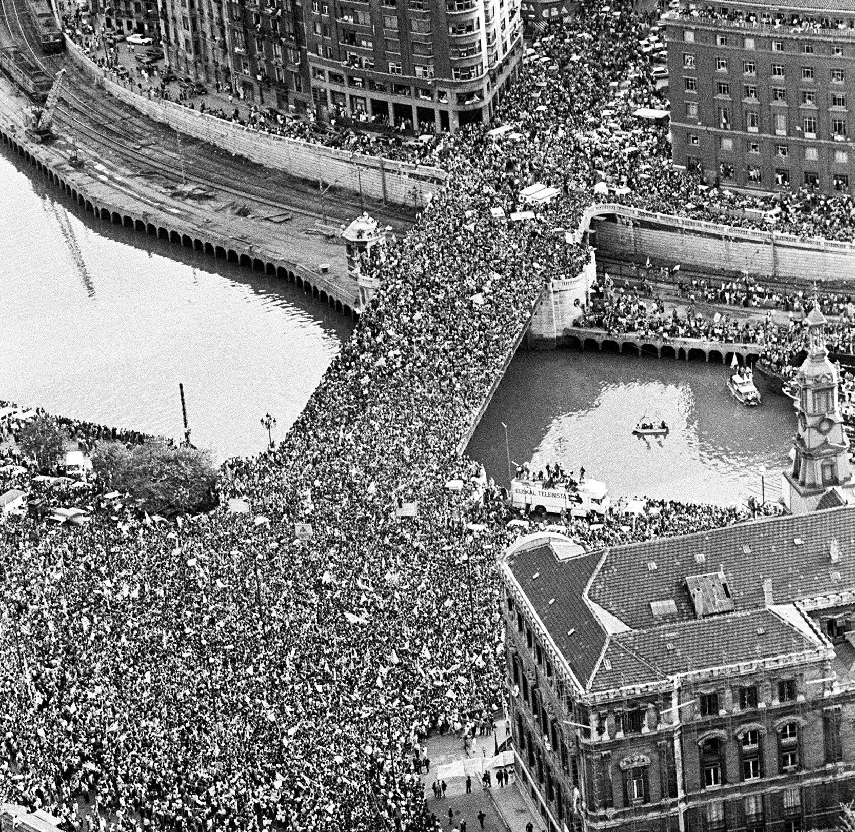 Στη Βαλένθια είχαμε μια ακόμα φιέστα, αφού η ομάδα τελικά σώθηκε, σε αντίθεση με τη Λας Πάλμας που υποβιβάστηκε, ενώ στα αποδυτήρια της Ρεάλ επικρατούσε σιωπή και απογοήτευση για τον τρόπο με τον οποίο χάθηκε το πρωτάθλημα. Στο μεταξύ, στο Μπιλμπάο ο κόσμος είχε βγει στους δρόμους για να γιορτάσει, περιμένοντας να υποδεχτεί την αποστολή που επέστρεφε από το Αρχιπέλαγος. Δυο μέρες αργότερα, επιστρατεύτηκε η gabarra, η θρυλική φορτηγίδα, μέσα στην οποία μπήκαν παίκτες και προπονητικό τιμ, για να ανέβουν τον ποταμό Νερβιόν συνοδεία δεκάδων πλοιαρίων και να γνωρίσουν την αποθέωση από ένα εκατομμύριο Βάσκους που είχαν συγκεντρωθεί κατά μήκος της διαδρομής! Ήταν από τις πιο συγκλονιστικές στιγμές σε ολόκληρη την ιστορία του συλλόγου (κεντρική φωτογραφία).