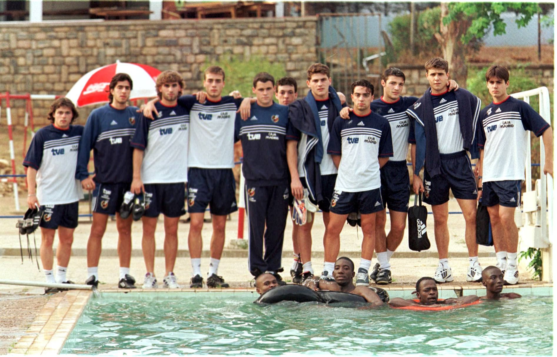 Ο Κασίγιας μαζί με την ισπανική αποστολή της Εθνικής Νέων (U20) στο Μουντιάλ U20 του 1999 στη Νιγηρία. Δεξιά του ο Τσάβι, αριστερά του οι Πάμπλο Ορμπάιθ και Φραν Γέστε.