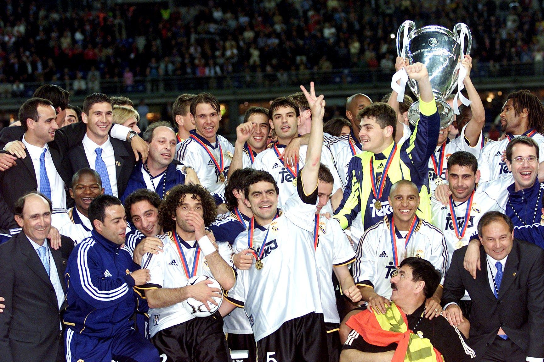 Οι παίκτες της Ρεάλ πανηγυρίζουν την κατάκτηση του Champions League της σεζόν 1999/00. Ήταν το πρώτο από τα τρία τρόπαια που κατέκτησε ο Κασίγιας στη διοργάνωση (24/5/2000).