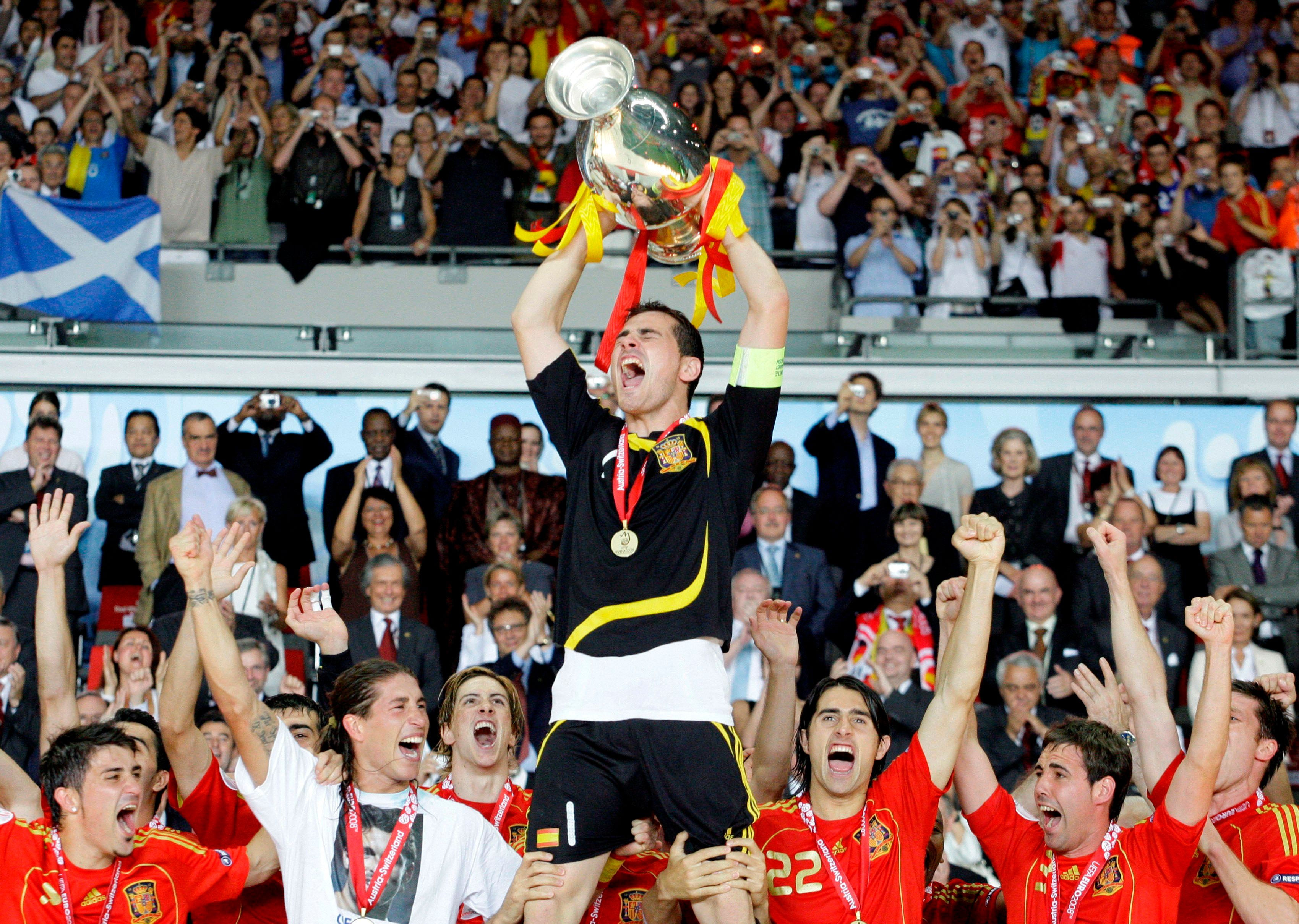 Ο Ίκερ Κασίγιας με το τρόπαιο της πρωταθλήτριας Ευρώπης που κατέκτησε η Εθνική Ισπανίας στο EURO του 2008 σε Αυστρία και Ελβετία (29/6/2008).