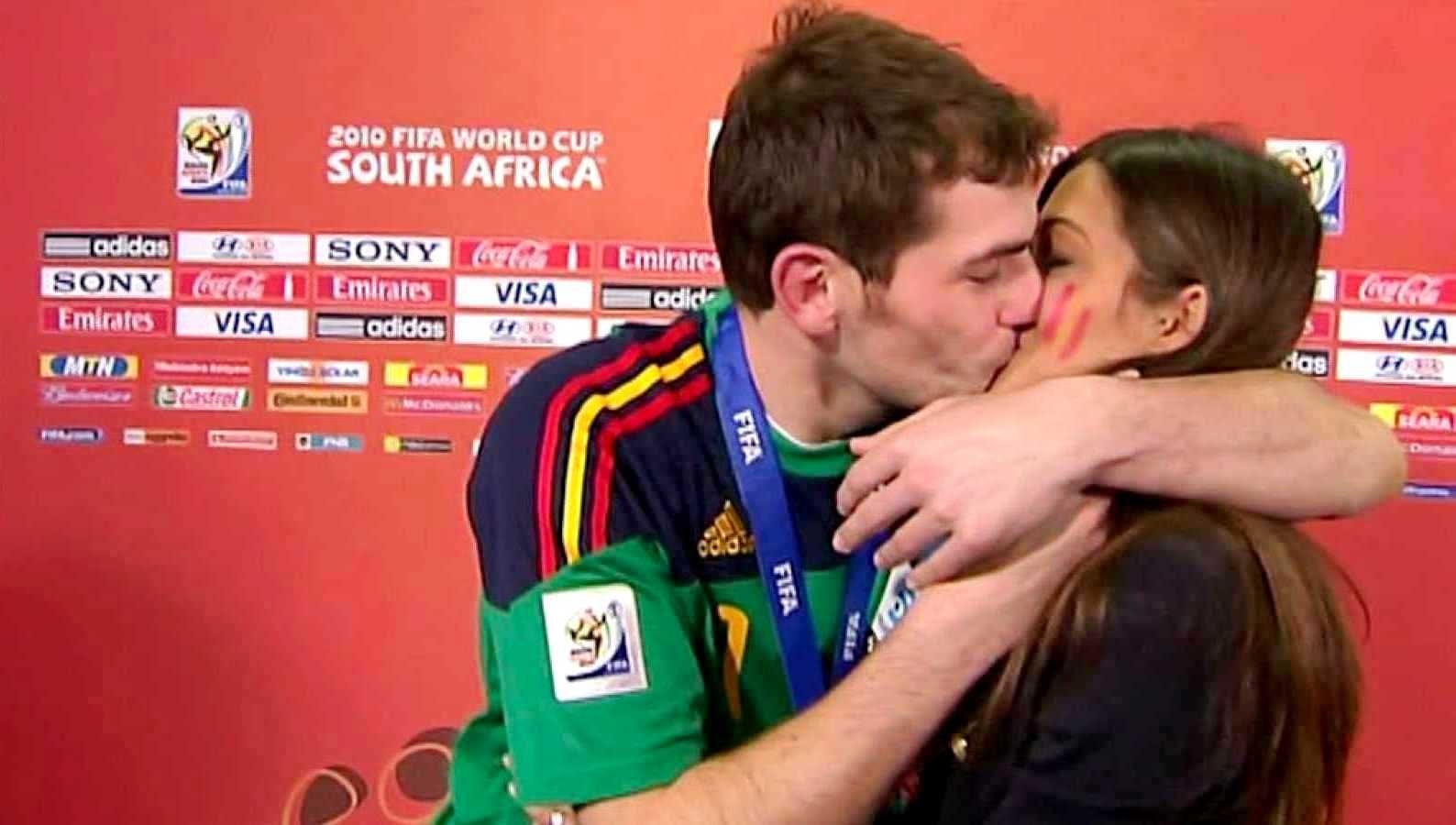 Το ειδύλλιο του Κασίγιας με τη δημοσιογράφο Σάρα Καρμπονέρο, ξεκίνησε στη Νότια Αφρική, όχι όμως στο Μουντιάλ του 2010, αλλά έναν χρόνο νωρίτερα, στο Κύπελλο Συνομοσπονδιών. Μετά την ήττα της Ισπανίας στην πρεμιέρα του Παγκοσμίου Κυπέλλου το 2010, ακούστηκαν και δημοσιεύτηκαν διάφορα κακεντρεχή για τη σχέση των δυο και για το πώς η Σάρα είχε επηρεάσει αρνητικά τον Ίκερ. Όταν ολοκληρώθηκε το τουρνουά με τον θρίαμβο της “Roja” και λίγο μετά την απονομή, ο Κασίγιας βρέθηκε στο στούντιο του γηπέδου για μια μίνι συνέντευξη στο Tele 5, το κανάλι που εργαζόταν η Καρμπονέρο. Όταν εκείνη τον ρώτησε πώς αισθάνεται, ο Ίκερ απάντησε: “Είμαι ευτυχισμένος, πολύ χαρούμενος, νομίζω ότι το αξίζαμε από την αρχή μέχρι το τέλος. Και νιώθω ευγνώμων μόνο απέναντι σε όσους με στήριξαν πάντα, στους γονείς μου, στον αδερφό μου…” Εκεί ο Ισπανός γκολκίπερ σταμάτησε φανερά συγκινημένος και ενώ η Σάρα του είπε “δεν πειράζει, ας μιλήσουμε λίγο για το παιχνίδι”, εκείνος τη φίλησε και αμέσως μετά αποχώρησε από το πλατό. Ήταν ένα φιλί που έκανε το γύρο του κόσμου και βέβαια, έγινε “μυθικό” στην ιστορία του ισπανικού ποδοσφαίρου.
